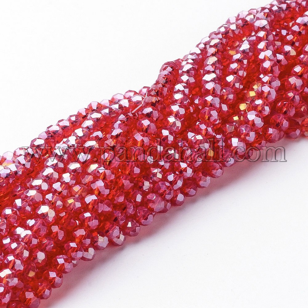 Electroplate Glass Beads Strands, AB Color Plated, Faceted, Rondelle, Red, 4x3mm, Hole: 1mm; about 140~145pcs/strand, 16″