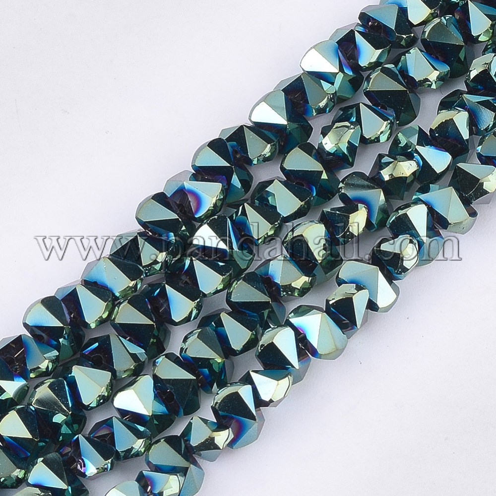Electroplate Glass Beads Strands, Faceted, CadetBlueSize: about 6~6.5mm long, 4.5~5mm wide, 5.5mm thick, hole: 1.2mm; about 100pcs/strand, 17.3”.