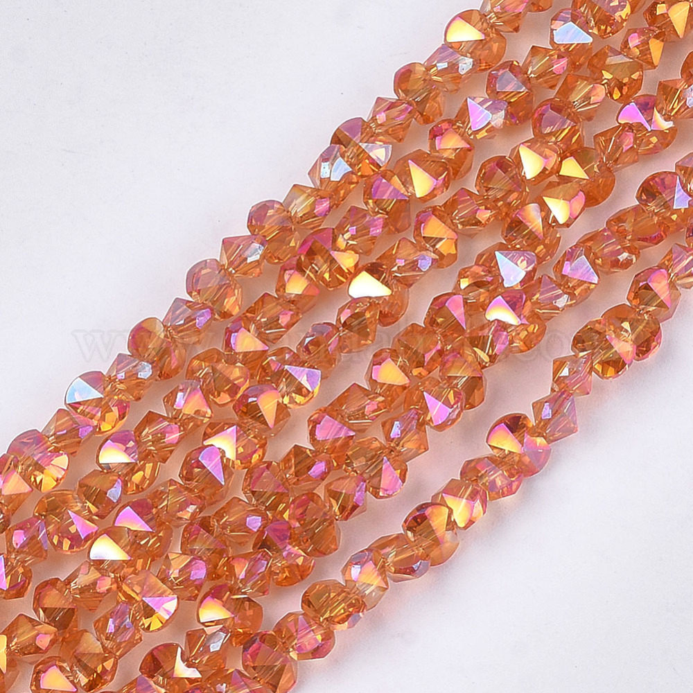 Electroplate Glass Beads Strands, Faceted, Diamond, Coral, 4~4.5×3~3.5×3.5mm, Hole: 1mm; about 150pcs/strand, 17.3”