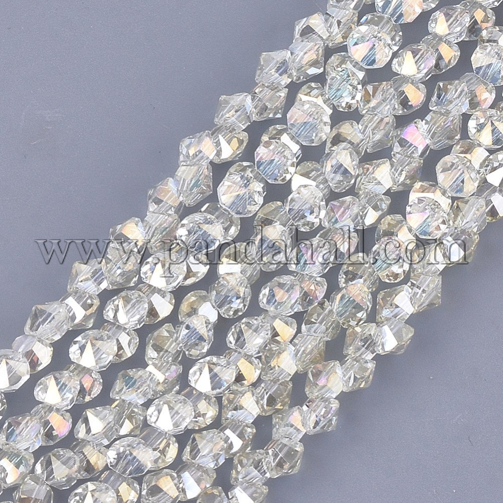 Electroplate Glass Beads Strands, Faceted, Diamond, LightYellowSize: about 3.5mm long, 3mm wide, 3mm thick, hole: 0.8mm; about 148pcs/strand, 13.7”.
