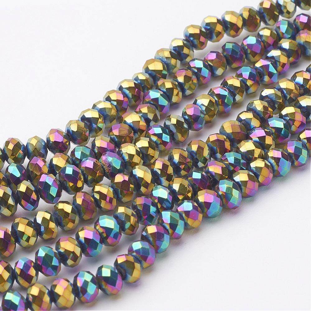 Electroplate Glass Beads Strands, Faceted, Rondelle, Multi-color Plated, 6x4mm, Hole: 1mm; about 95pcs/strand, 14″