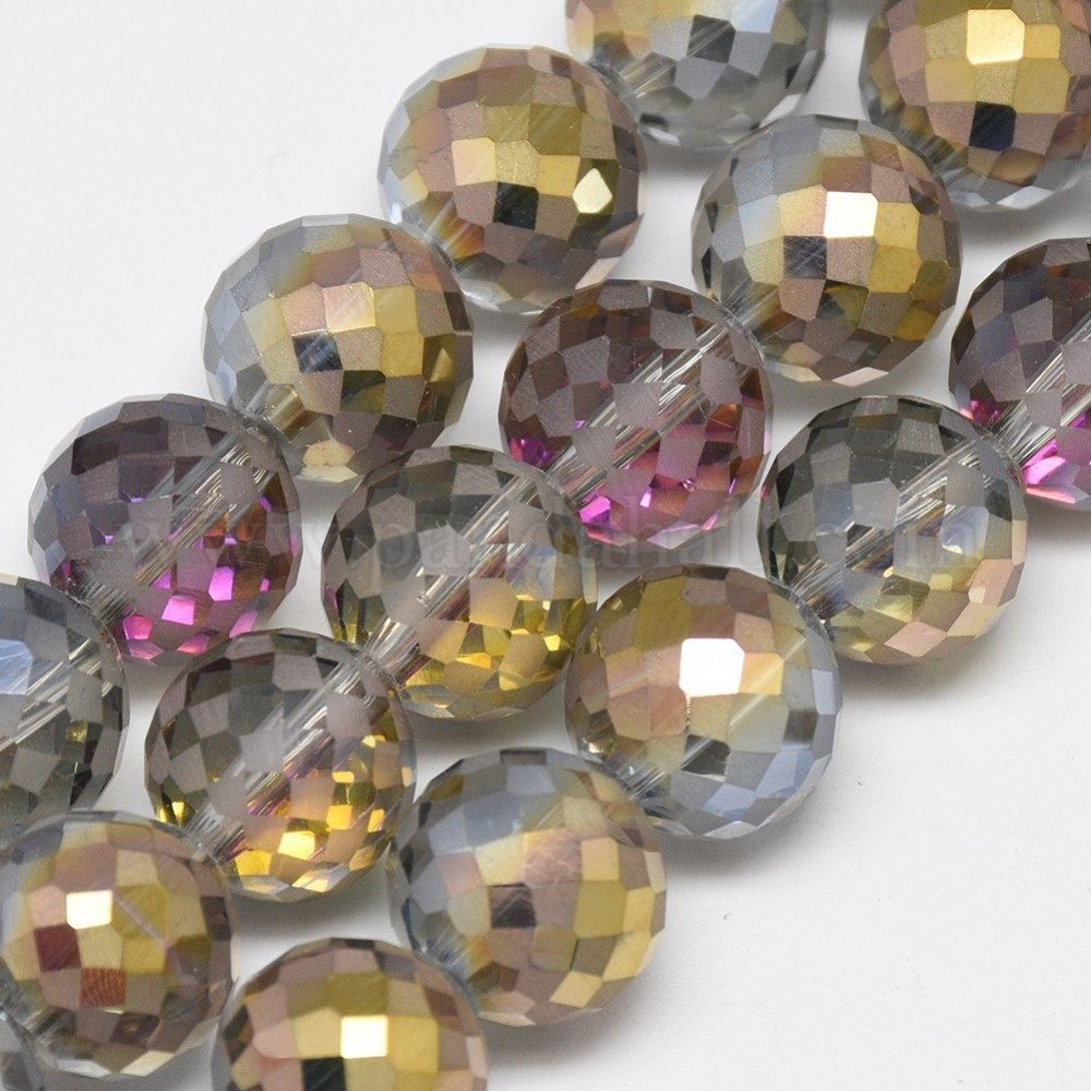 Electroplate Glass Beads Strands, Rainbow Plated, Frosted, Faceted, Round, GraySize: about 12mm in diameter, hole: 1.5mm; about 50pcs/strand, 22.05″.