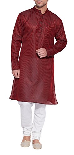 Invest in a kurta that you’ll have in your wardrobe for years to come! Order the Silk Kurta for Men now.A CLASSIC INDIAN FASHION This emerald Maroon kurta reflects traditional Indian fashion designs with a mandarin collar, four buttons, side vents and a chest patch pocket