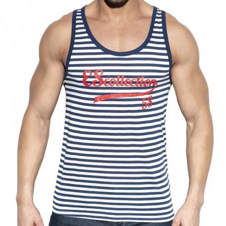Fitted tank top made from soft and comfortable microfiber with a sailor stripe. ES Collection 58 logo over the chest.