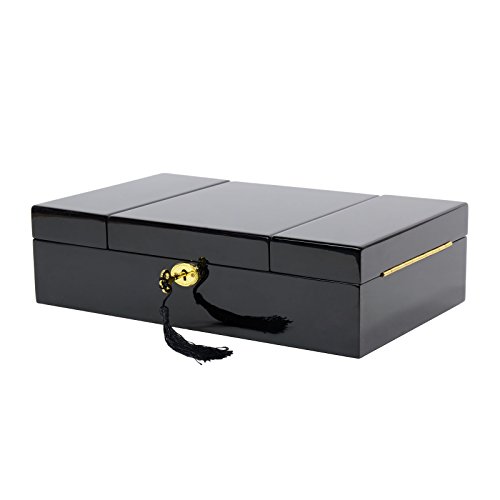 Executive High Gloss Black Wood Finsh Valet Watch & Cufflink Jewelry Box & Organizer Storage Case with Lock and Key