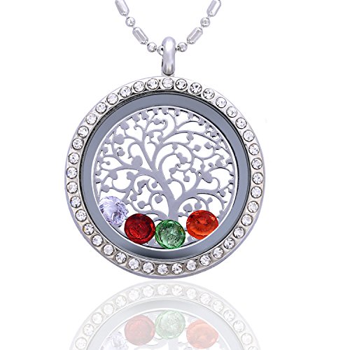 Family Tree of Life Birthstone Necklace Jewelry – Gifts for Mom Floating Charm Living Memory Lockets Pendant