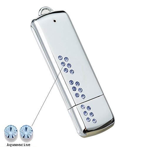 Faost Design 32Gb Swarovski Crystal DM328932 Heavy Mirror Chrome Metal Case Handmade USB2.0 Flash Drive Memory Stick Pendrive Thumb,External Storage Device More Color Crystal Blue LED Light (Blue)