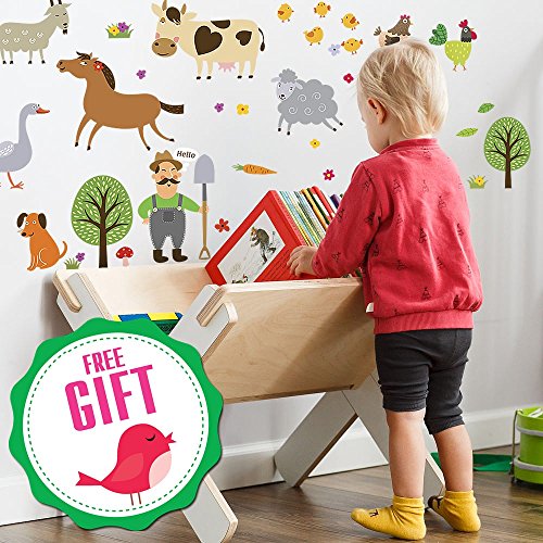 Farm Animal Barnyard Wall Decals for Kids – Farming Baby Room Children Stickers for Toddlers Bedroom [>40 art playroom clings] + Free BIRD GIFT!