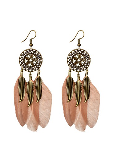 Feather Design Pink Metal Earring Set FREE Shipping & 30 Days Easy Return