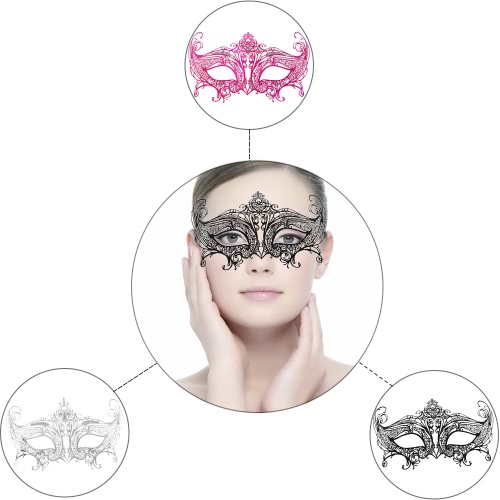 Festnight Romantic Black Laser Cut Metal Half Mask with Rhinestones Masquerade Ball Halloween Mask Fancy Gift