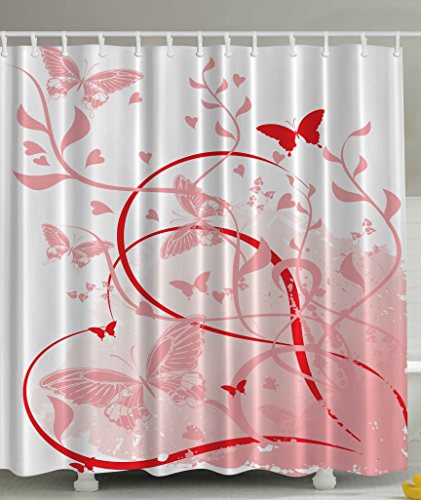Floral Butterflies Hearts Abstract Art Paintings for Her Baby White Pink Red Rose Quartz Spring Colors Illustration Design Digital Print Polyester Fabric Shower Curtain