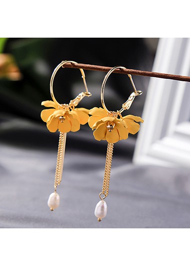 Flower Design Chain Tassel Metal Earring Set FREE Shipping & 30 Days Easy Return