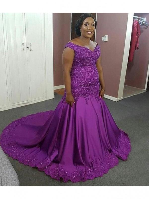 Buy Chicloth Mermaid V-neck Sleeveless With Beading Court Train Satin Plus Size Dresses, Prom Dresses Cheap,Homecoming Dresses Cheap Online.