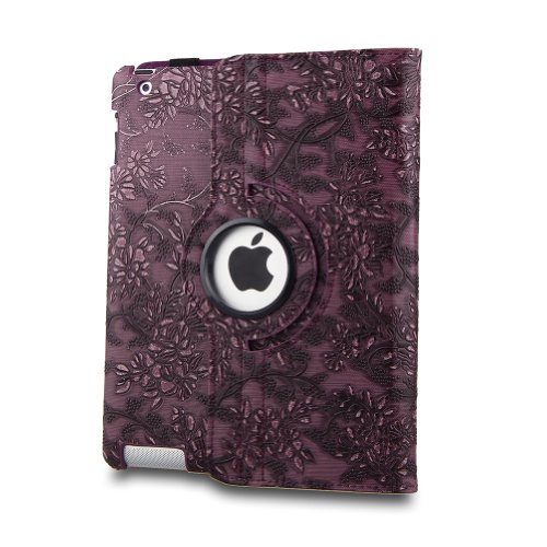 Generic New Modern Flower Design Patterns Slim-fit Lightweight PU Leather Case Skin Cover for iPad & Amazon Kindle Fire HDX Series Products (Embossed Flower Style) (iPad 2 3 4, Purple)