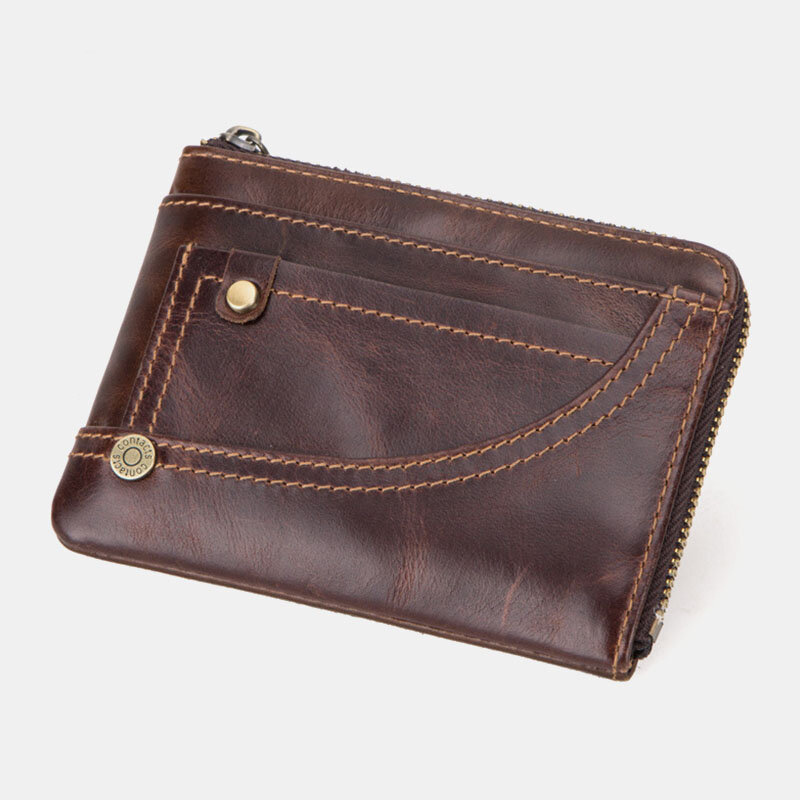 Genuine Leather Wallet Card Holder Zipper Coin Bag Wallet For Men