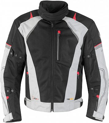 2-layer system Cordura® is a durable fabric, offering high abrasion and tear resistance YF protectors on shoulders and elbows certified to EN 1621-1 removable Special foam insert removable in the back area Forcefield back protector can be retrofitted – certified according to EN 1621-1 or EN 1621-2 removable inner lining with HUMAX® climate membrane Stretch insert in the arm area Upper and lower arms adjustment flexible snap soft collar closure all around connection zipper safety seams reflective material three outside pockets, two inside pockets