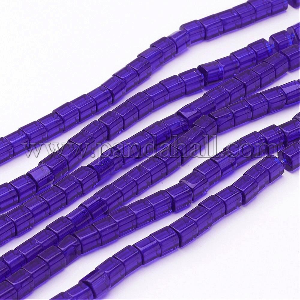Glass Beads Strands, Cube, DarkBlueabout 4~5mm long, 4~5mm wide, 4~5mm thick, hole: 1mm, about 75~78pcs/strand, 13~14″Get the look of top fashion glamour with low-cost, lightweight beads. It is not only has the appearance of glass and crystal, but also lighter than them. Light weight, economy additions for quick-selling jewelry creations.