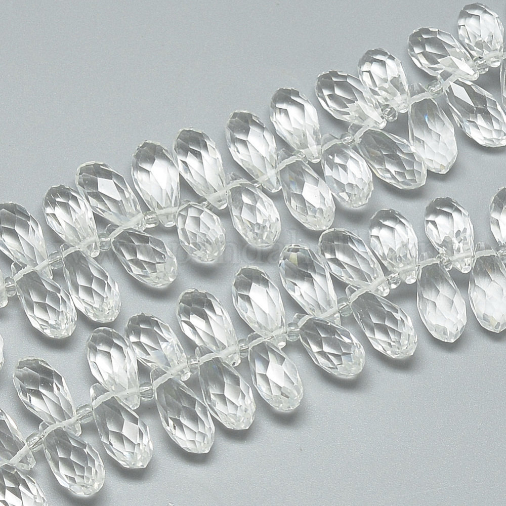 Glass Beads Strands, Faceted, Drop, Clear, 12~13x6mm, Hole: 1mm; about 96~100pcs/17.9”
