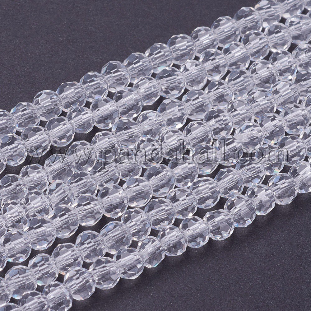 Glass Beads Strands, Faceted, Round, Clear, 4mm, Hole: 1mm; about 98pcs/strand, 13.7″