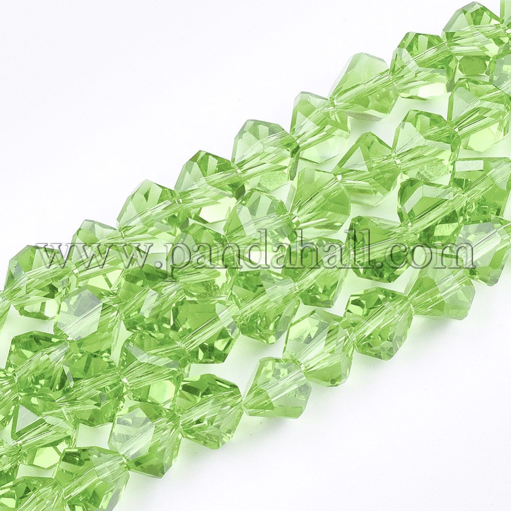 Glass Beads Strands, Faceted, Triangle, PaleGreenSize: about 7~7.5mm long, 7~7.5mm wide, 4~5mm thick, hole: 1.5mm; about 100pcs/strand, 17.3″~19″.