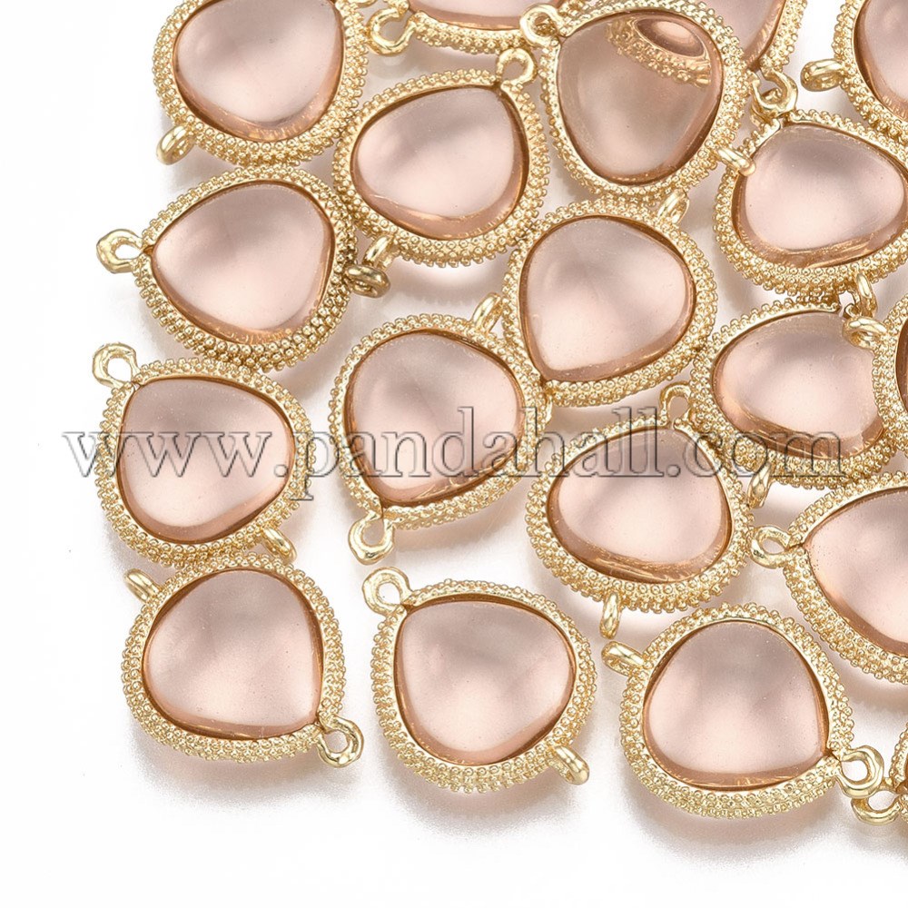 Glass Links/Connectors, with Brass Findings, Drop, Golden, LightSalmonSize: about 19mm long, 14mm wide, 5mm thick, hole: 1.2mm.