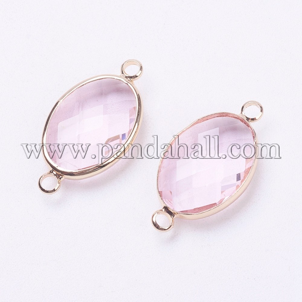 Glass Links, with Brass Findings, Faceted, Oval, Light Gold, Thistle, 25×13.5x6mm, Hole: 2mm