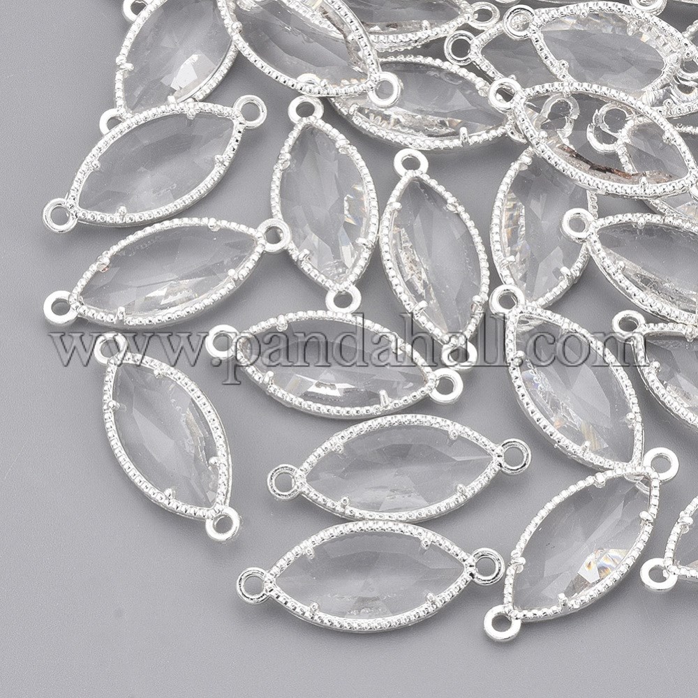 Glass Links, with Silver Plated Environmental Alloy Findings, Faceted, Horse Eye, ClearSize: about 21mm long, 9mm wide, 4mm thick, hole: 1.2mm.