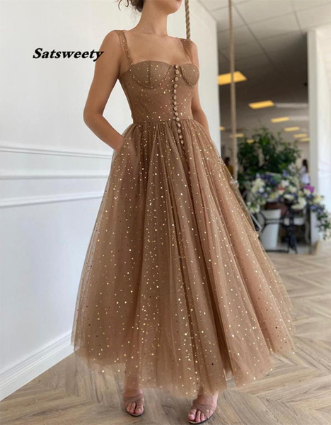 Glittering Stars Sequined Prom Dresses A Line Sweetheart Short Prom Dress Ankle Length vestidos de cóctel
