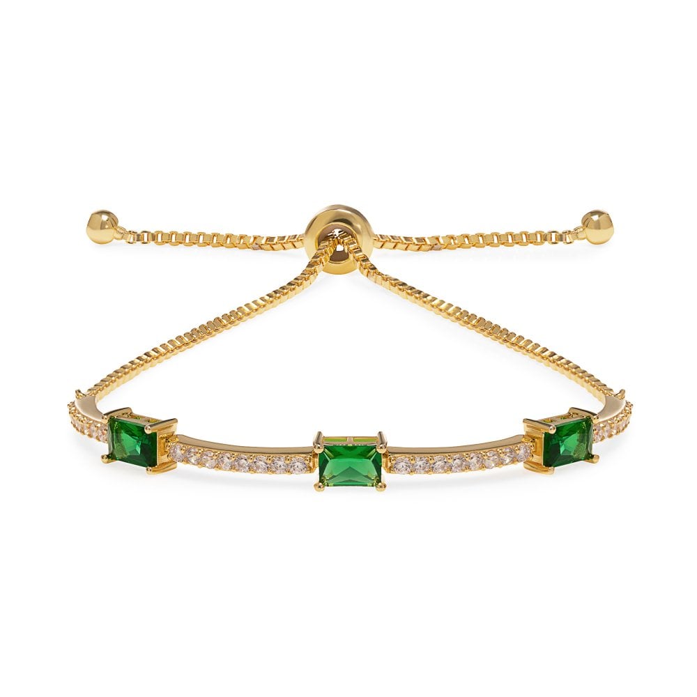 Gold Plated Green Baguette Toggle Bracelet