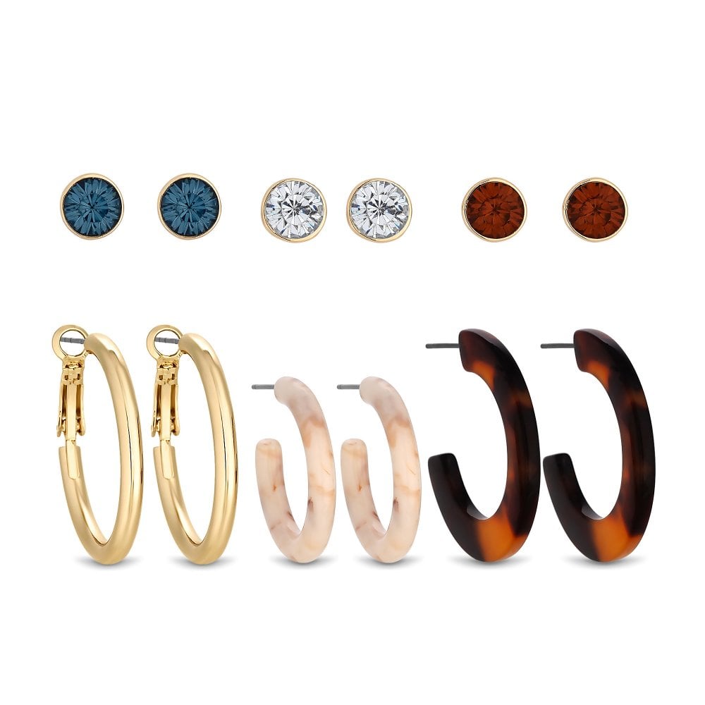 Gold Plated Hoop And Resin Stud Earrings Pack Of 6