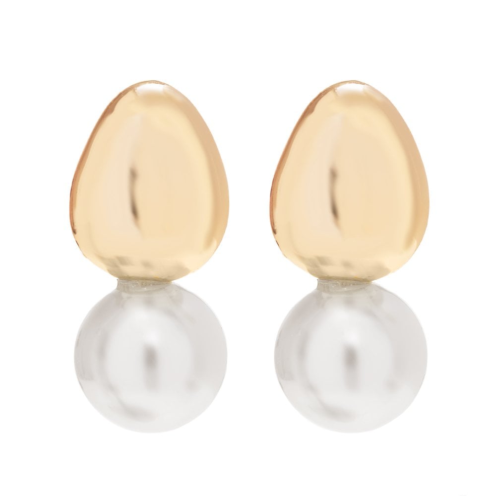 Gold Plated Pearl Polish Top Drop Earrings