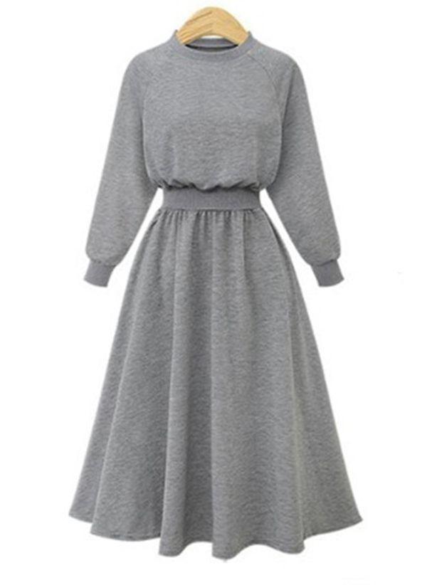 Gray Size Solid Round Neckline Plus Size Summer Dresses