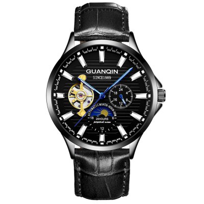 GUANQIN GJ16131 Men Hollow Out Automatic Mechanical Watch Leather Band Wristwatch
