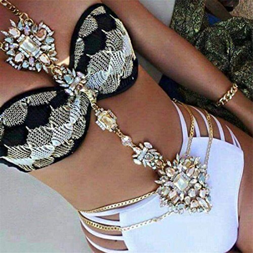 HANYI Newest Retro Sexy Bikini Body Chain Necklace Swimwear Bathing Suit Fashion Harness Triangle Vintage Statement Body Jewelry, Gift for Women for Beach for Outdoors (White)