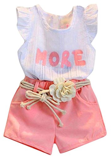 Happy Town 2PCS Set Toddler Kids Baby Girls Outfits Clothes T-Shirt Vest Tops+Shorts Pants(2-6 T) (Pink#2, 2 T)