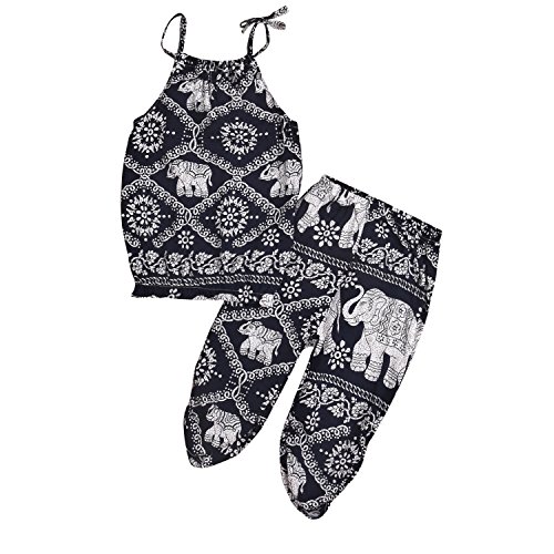 HappyMA 2PCS Toddler Baby Girls Kids Romper Elephant Outfit, Floral Straps Tops+ Harem Pants Summer Clothes Set (2-3 Years)