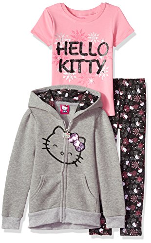 Hello Kitty Little Girls’ 3 Piece Hooded Legging Set, Gray, 5