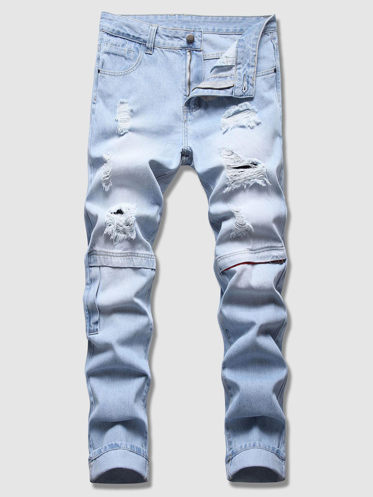 Hidden Zipper Ripped Light Wash Jeans 30 Light blue