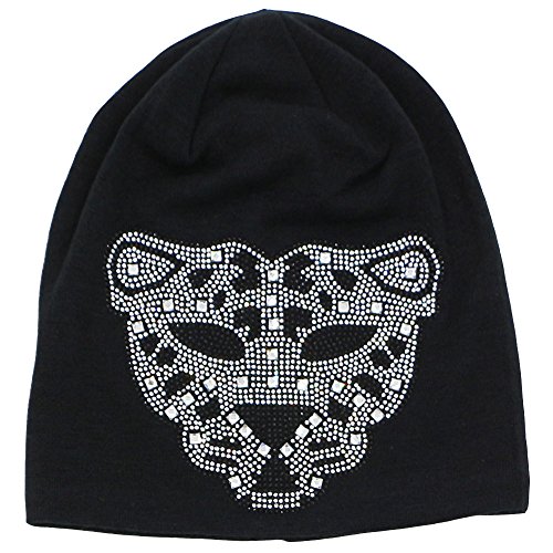 Hiloving Summer Black Stretch Oversized Slouchy Cotton Diamond Leopard Knit Beanie Hats For Women (Black)