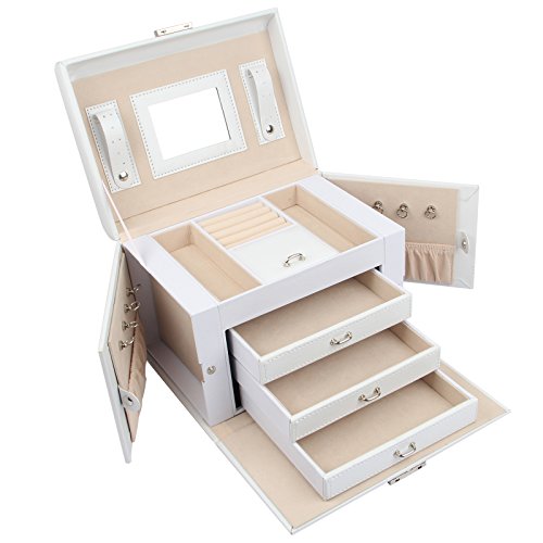 Homde Jewelry Box Necklace Ring Storage Organizer Synthetic Leather Large Jewel Cabinet Gift Case (White)