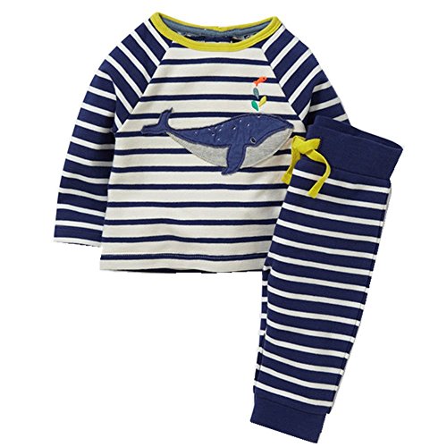 Hongshilian Boys Cotton Long Sleeve Cartoon Clothing Sets (3T, Whale & Stripe)