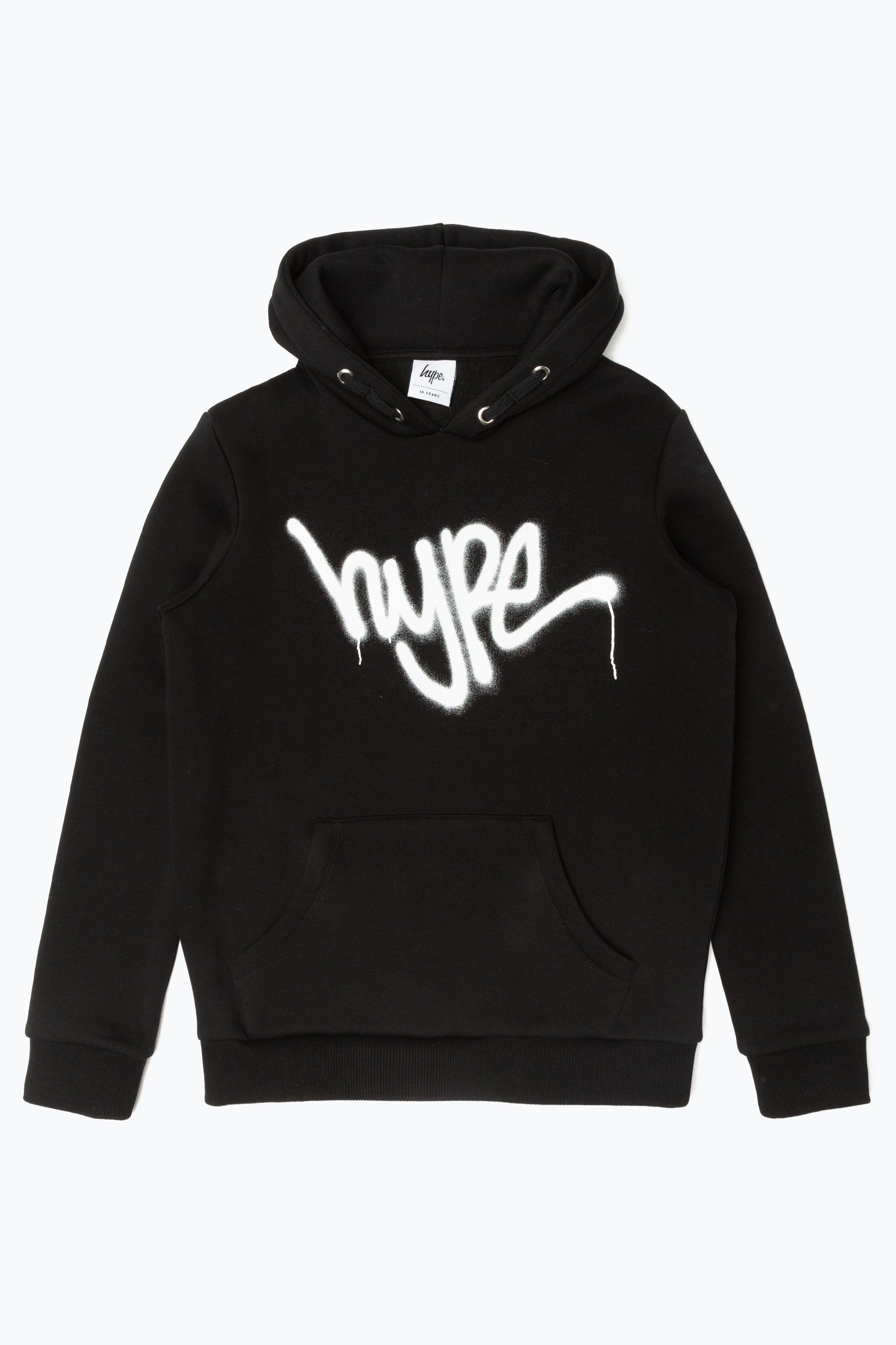 Hype Black Graffiti Script Kids Pullover Hoodie | Size 11/12Y