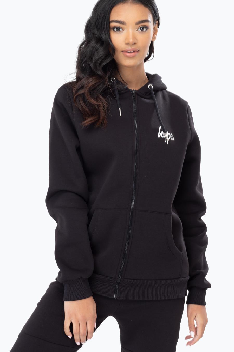 Hype Black White Script Womens Zip Hoodie | Size 4