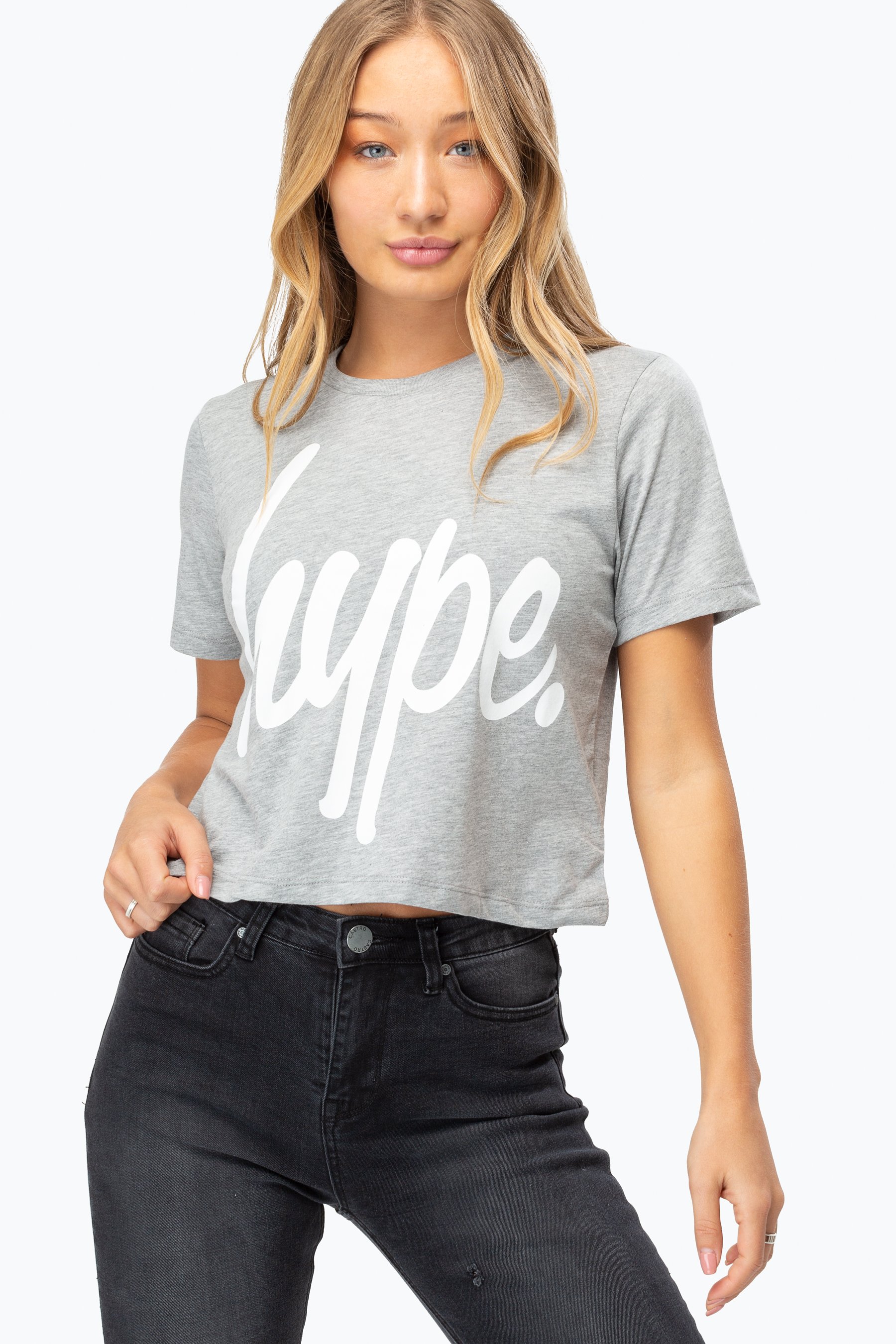 Hype Grey Script Womens Crop T-Shirt | Size 14