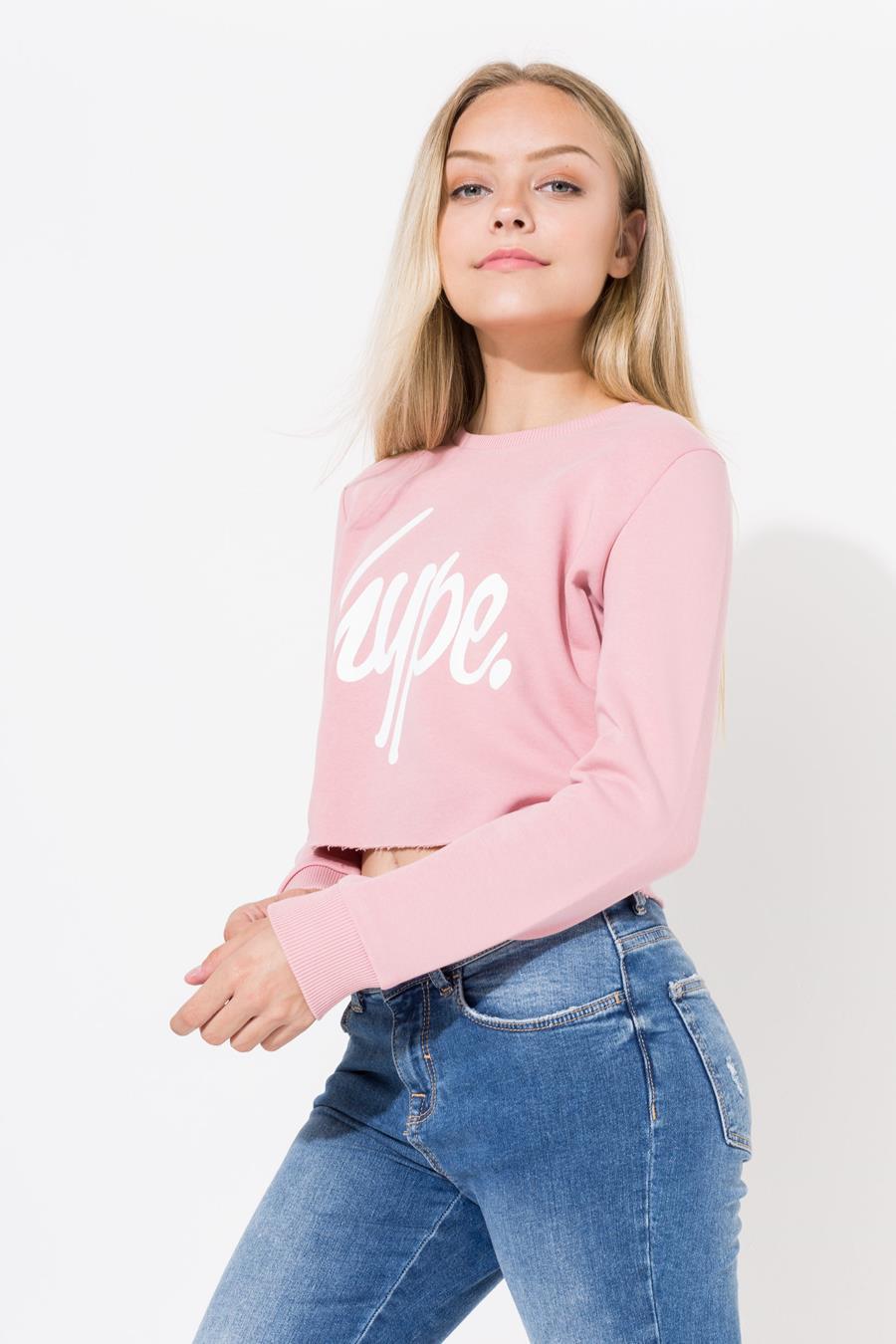 Hype Pink Raw Edge Script Kids Crop Crewneck | Hype Pink Raw Edge Script Kids Crop Crewneck | Size 11-12