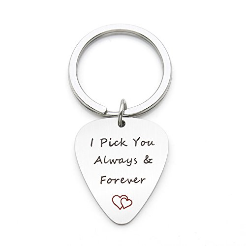 I Pick You Always and Forever I Pick you Stainless Steel Guitar Pick Keychain Musical Gift Anniversary Valentine’s Day Gift Double Sided Engraved !