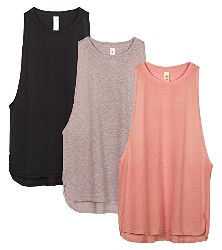 icyzone Yoga Tops Activewear Workout Clothes Sports Racerback Tank Tops for Women(M,Black/Beige/Pale Blush)