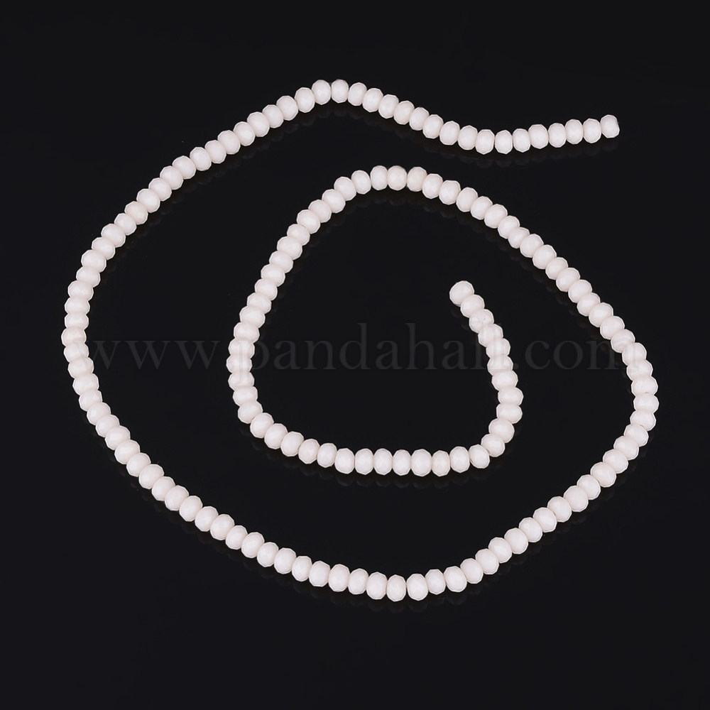 Imitation Jade Glass Bead Strands, Faceted, Dyed, Rondelle, NavajoWhiteSize: about 4mm diameter, 3mm thick, hole: 1mm; about 138pcs/strand, 16.5″.Imitated jade effect makes glass beads look more charming and fashionable. It can be matched with hooks, jumprings, and pins to be necklaces, bracelets and so on. Due to the beads are dyed, color may vary slightly.