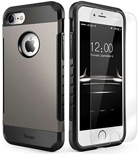 iPhone 7 Case, Shockproof Slim Anti-Scratch Protective Kit with [Tempered Glass Screen Protector] Heavy Duty Dual layer Rugged Case Non-slip Grip Cover for iPhone 7-Gunmetal