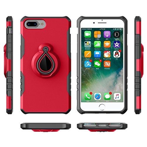 iPhone 8 Plus Case iPhone 7 Plus Case Shock-Proof 360 Degree Rotating Ring Kickstand Soft TPU+PC Cover [Support Magnetic Car Mount Case] for Apple iPhone 7 Plus and Apple iPhone 8 Plus (Red)